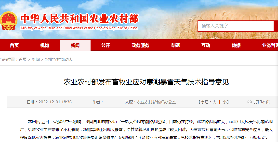速看!農業農村部發布畜牧業應對寒潮暴雪天氣技術指導意見
