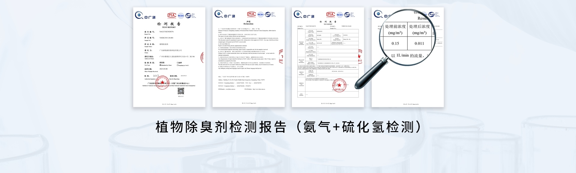 從天然植物中分離提取的天然成分,具有抑菌、殺菌和除臭功效,對氨、硫化氫等無機物和低分子脂肪酸、胺類、醛類、酮類、醚類、鹵代烴等有機物等惡臭有吸附、遮蓋、良好的分解,或者與異味分子發生碰撞, 進行反應,促使異味分子發生改變原有分子結構, 使之失去臭味,達到去除臭味的效果。