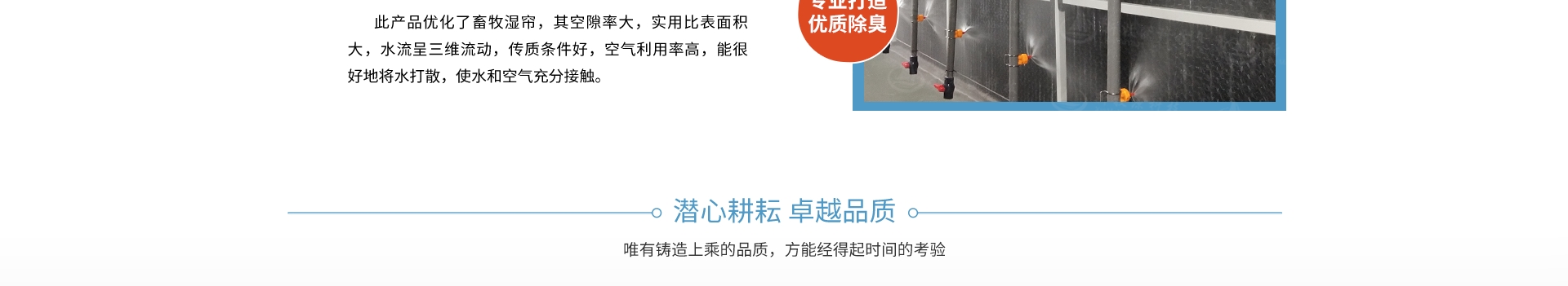 上面經過噴淋,像氨氣這些水溶性很強的有害氣體就會溶于水中從而避免被直接排到外界。同時塑料濕簾的特殊材質還能有效過濾各種雜質。
